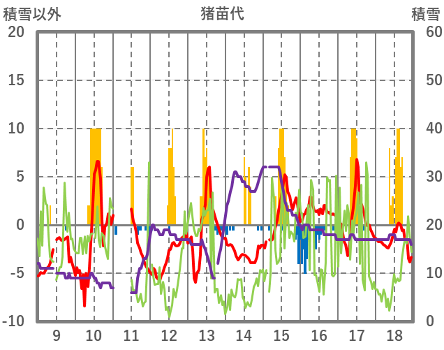 | 日 | 時 | 気温 | 降水 | 風向/風速 | 日照 | 積雪 | 降雪 |