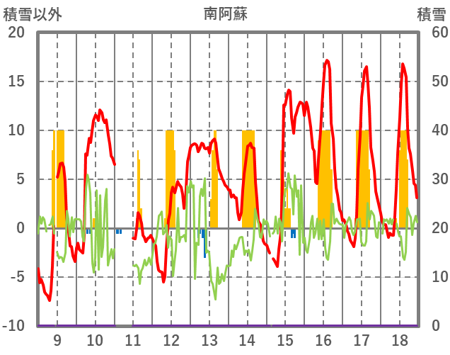 | 日 | 時 | 気温 | 降水 | 風向/風速 | 日照 | 積雪 | 降雪 |