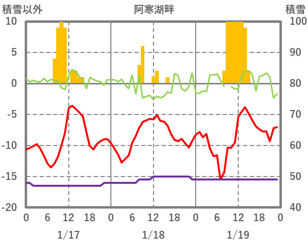 | 日 | 時 | 気温 | 降水 | 風向/風速 | 日照 | 積雪 | 降雪 |
