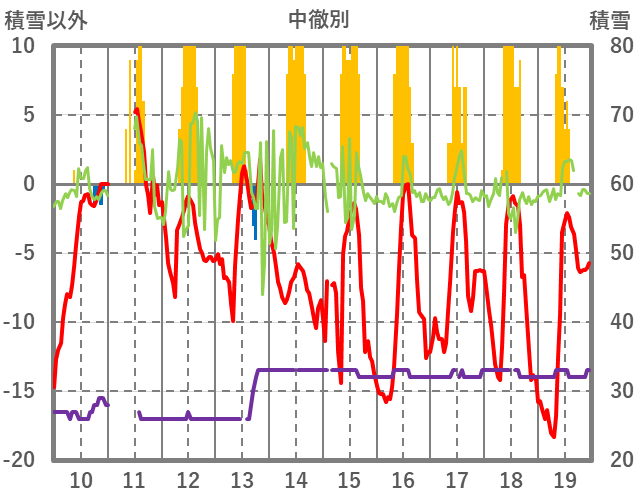 | 日 | 時 | 気温 | 降水 | 風向/風速 | 日照 | 積雪 | 降雪 |