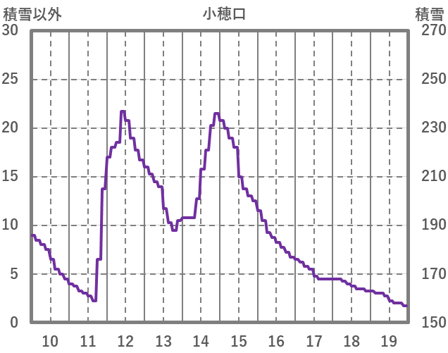 | 日 | 時 | 気温 | 降水 | 風向/風速 | 日照 | 積雪 | 降雪 |