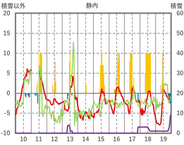 | 日 | 時 | 気温 | 降水 | 風向/風速 | 日照 | 積雪 | 降雪 |