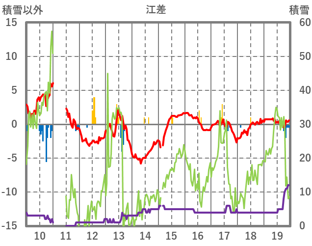 | 日 | 時 | 気温 | 降水 | 風向/風速 | 日照 | 積雪 | 降雪 |