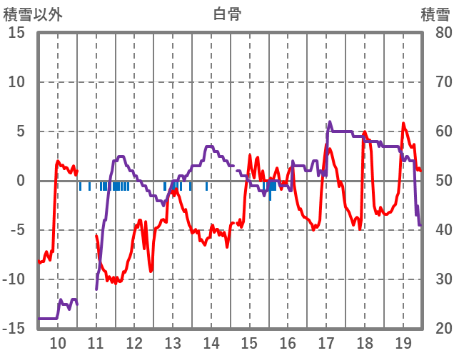 | 日 | 時 | 気温 | 降水 | 風向/風速 | 日照 | 積雪 | 降雪 |