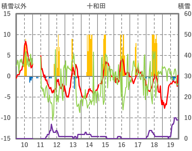 | 日 | 時 | 気温 | 降水 | 風向/風速 | 日照 | 積雪 | 降雪 |