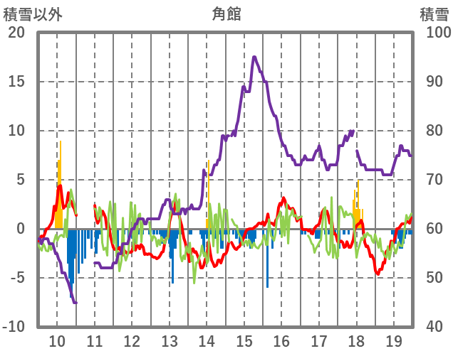 | 日 | 時 | 気温 | 降水 | 風向/風速 | 日照 | 積雪 | 降雪 |