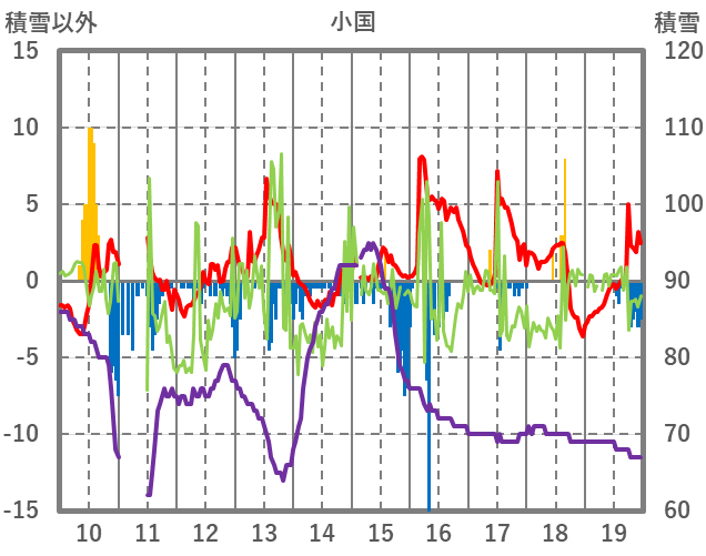 | 日 | 時 | 気温 | 降水 | 風向/風速 | 日照 | 積雪 | 降雪 |