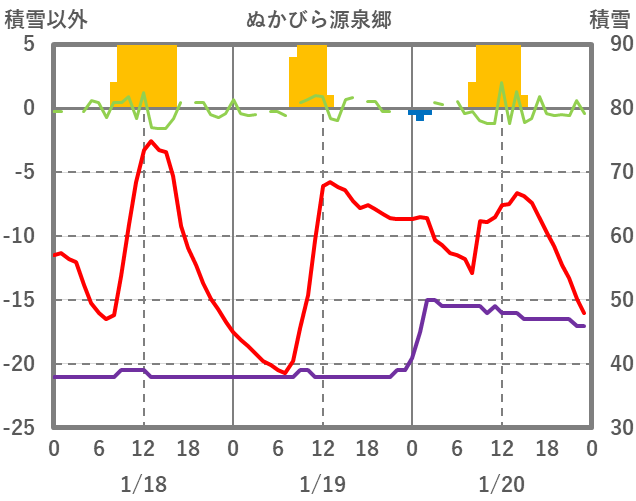 | 日 | 時 | 気温 | 降水 | 風向/風速 | 日照 | 積雪 | 降雪 |