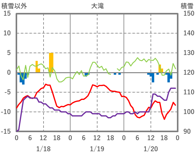 | 日 | 時 | 気温 | 降水 | 風向/風速 | 日照 | 積雪 | 降雪 |