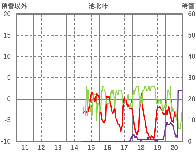 | 日 | 時 | 気温 | 降水 | 風向/風速 | 日照 | 積雪 | 降雪 |
