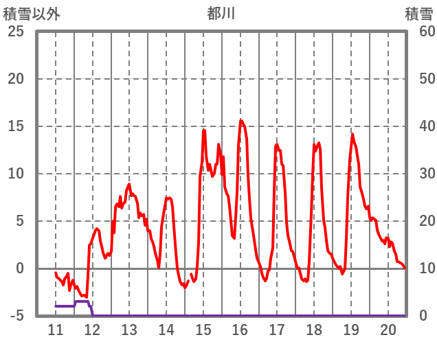 | 日 | 時 | 気温 | 降水 | 風向/風速 | 日照 | 積雪 | 降雪 |
