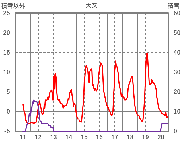 | 日 | 時 | 気温 | 降水 | 風向/風速 | 日照 | 積雪 | 降雪 |