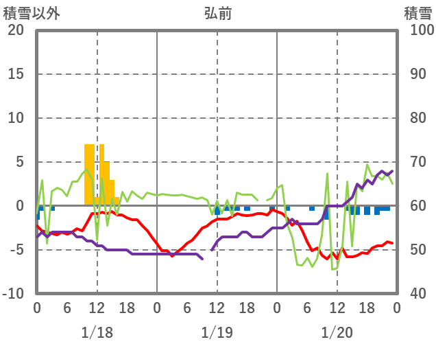 | 日 | 時 | 気温 | 降水 | 風向/風速 | 日照 | 積雪 | 降雪 |