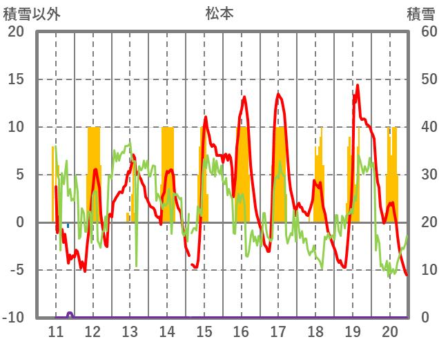 | 日 | 時 | 気温 | 降水 | 風向/風速 | 日照 | 積雪 | 降雪 |