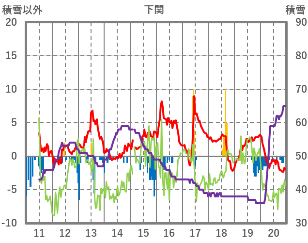 | 日 | 時 | 気温 | 降水 | 風向/風速 | 日照 | 積雪 | 降雪 |