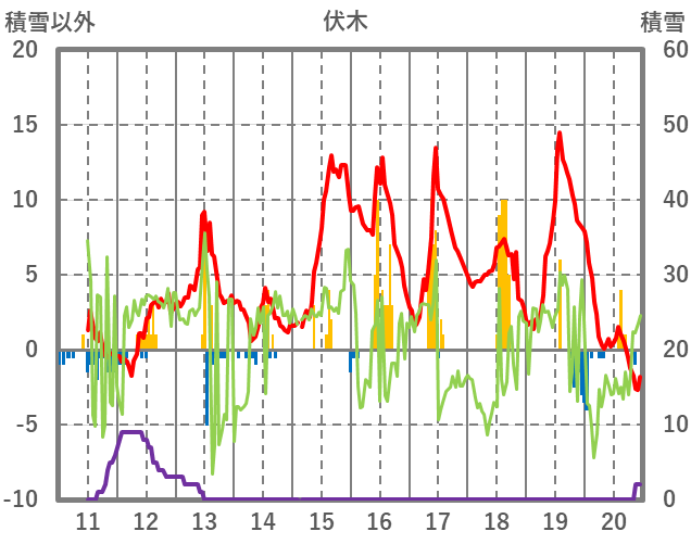 | 日 | 時 | 気温 | 降水 | 風向/風速 | 日照 | 積雪 | 降雪 |
