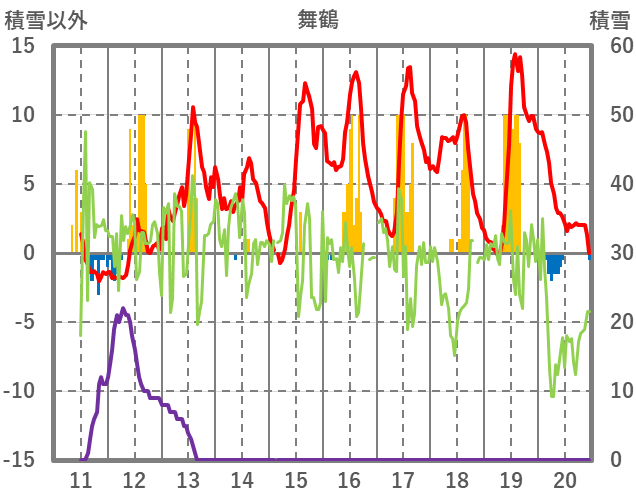 | 日 | 時 | 気温 | 降水 | 風向/風速 | 日照 | 積雪 | 降雪 |