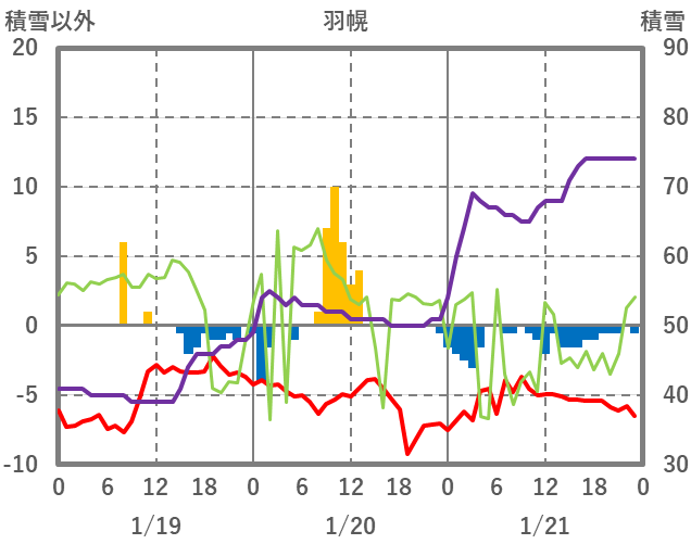 | 日 | 時 | 気温 | 降水 | 風向/風速 | 日照 | 積雪 | 降雪 |