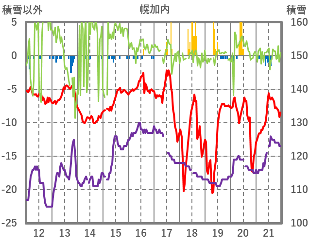 | 日 | 時 | 気温 | 降水 | 風向/風速 | 日照 | 積雪 | 降雪 |