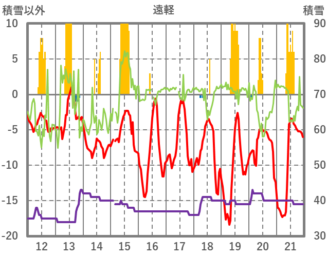 | 日 | 時 | 気温 | 降水 | 風向/風速 | 日照 | 積雪 | 降雪 |