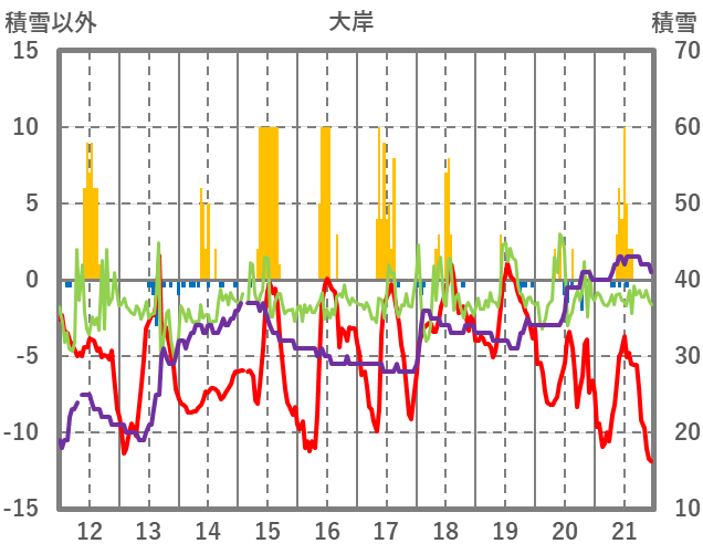 | 日 | 時 | 気温 | 降水 | 風向/風速 | 日照 | 積雪 | 降雪 |