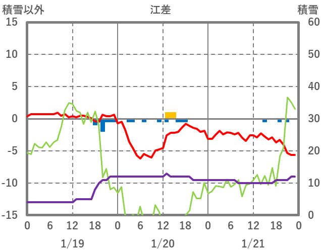 | 日 | 時 | 気温 | 降水 | 風向/風速 | 日照 | 積雪 | 降雪 |