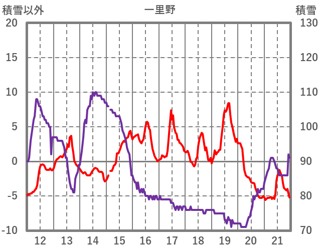 | 日 | 時 | 気温 | 降水 | 風向/風速 | 日照 | 積雪 | 降雪 |