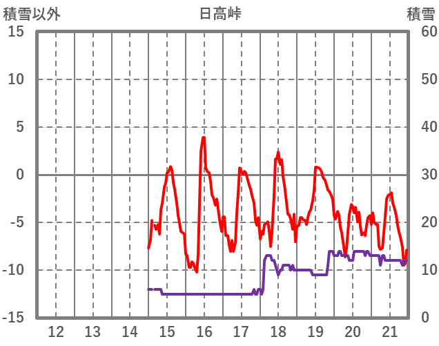 | 日 | 時 | 気温 | 降水 | 風向/風速 | 日照 | 積雪 | 降雪 |