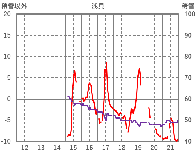 | 日 | 時 | 気温 | 降水 | 風向/風速 | 日照 | 積雪 | 降雪 |