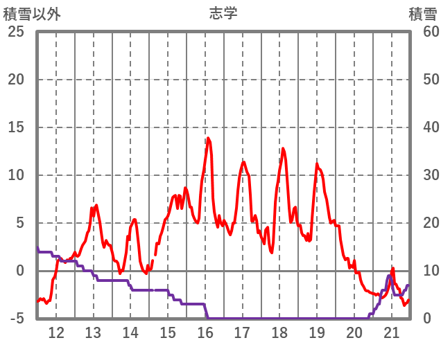 | 日 | 時 | 気温 | 降水 | 風向/風速 | 日照 | 積雪 | 降雪 |