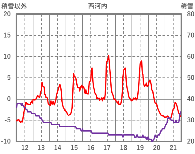 | 日 | 時 | 気温 | 降水 | 風向/風速 | 日照 | 積雪 | 降雪 |