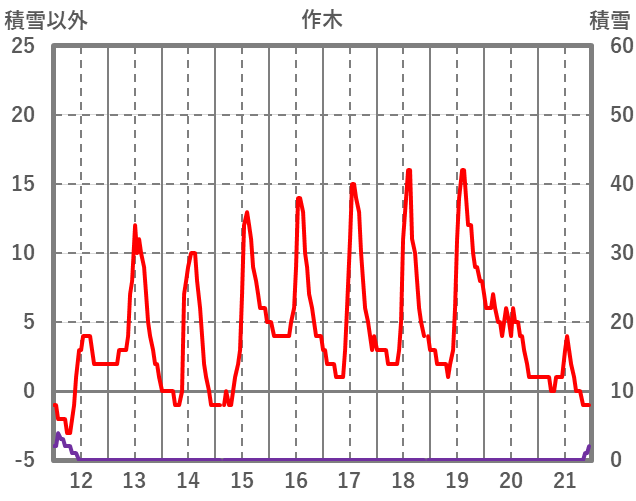 | 日 | 時 | 気温 | 降水 | 風向/風速 | 日照 | 積雪 | 降雪 |