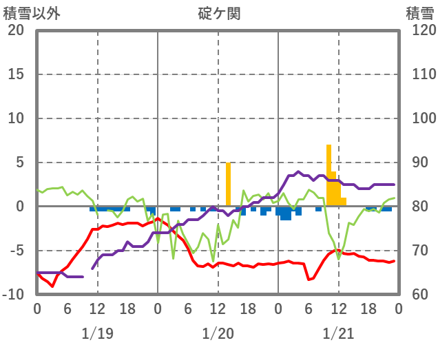 | 日 | 時 | 気温 | 降水 | 風向/風速 | 日照 | 積雪 | 降雪 |