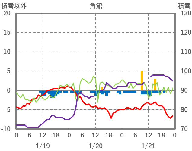 | 日 | 時 | 気温 | 降水 | 風向/風速 | 日照 | 積雪 | 降雪 |