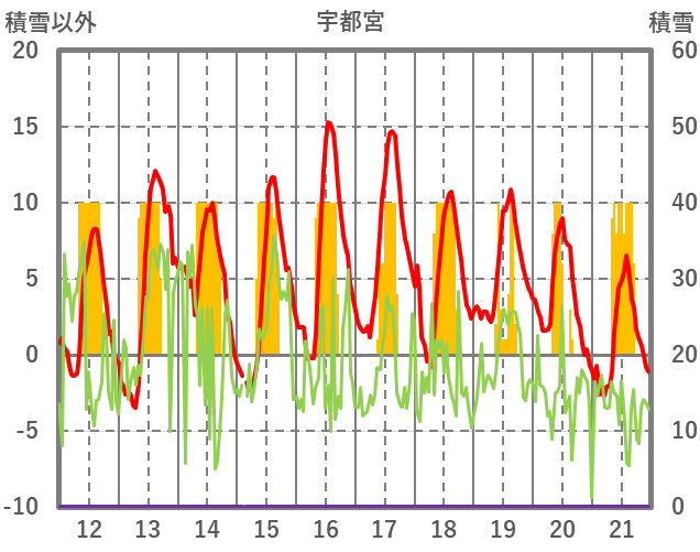 | 日 | 時 | 気温 | 降水 | 風向/風速 | 日照 | 積雪 | 降雪 |
