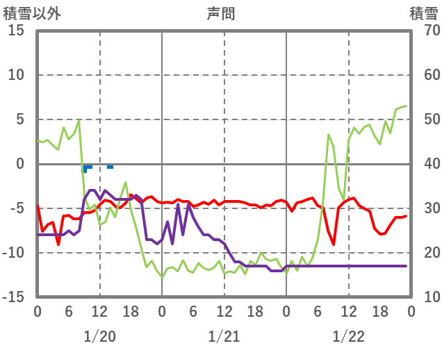 | 日 | 時 | 気温 | 降水 | 風向/風速 | 日照 | 積雪 | 降雪 |