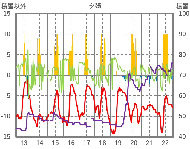 | 日 | 時 | 気温 | 降水 | 風向/風速 | 日照 | 積雪 | 降雪 |