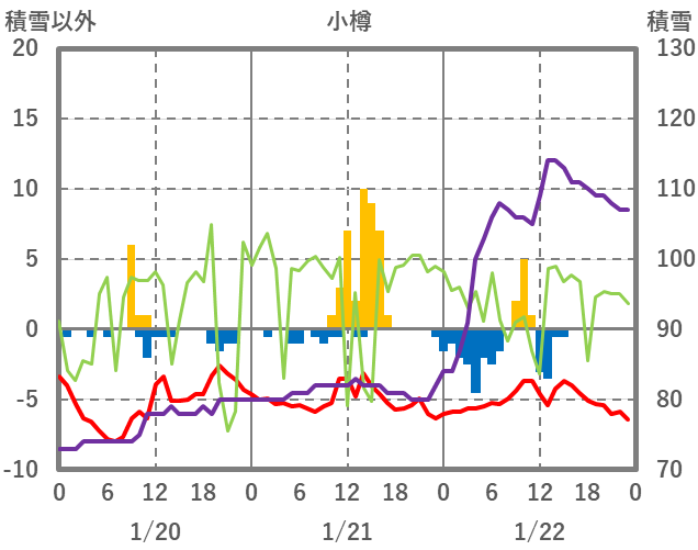 | 日 | 時 | 気温 | 降水 | 風向/風速 | 日照 | 積雪 | 降雪 |