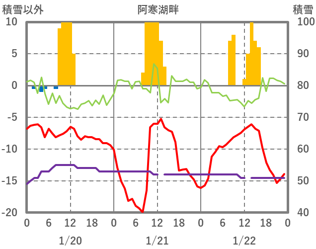 | 日 | 時 | 気温 | 降水 | 風向/風速 | 日照 | 積雪 | 降雪 |