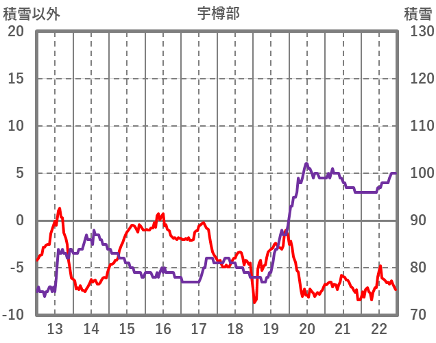 | 日 | 時 | 気温 | 降水 | 風向/風速 | 日照 | 積雪 | 降雪 |