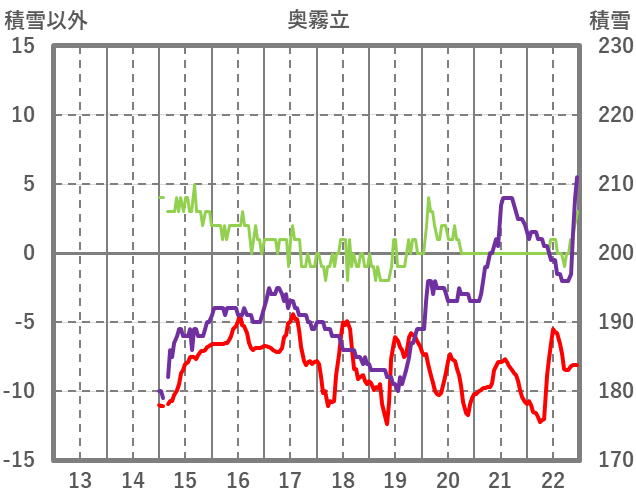 | 日 | 時 | 気温 | 降水 | 風向/風速 | 日照 | 積雪 | 降雪 |