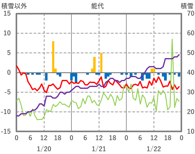 | 日 | 時 | 気温 | 降水 | 風向/風速 | 日照 | 積雪 | 降雪 |