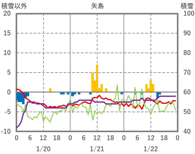 | 日 | 時 | 気温 | 降水 | 風向/風速 | 日照 | 積雪 | 降雪 |