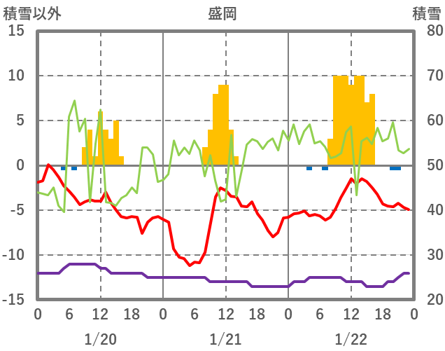 | 日 | 時 | 気温 | 降水 | 風向/風速 | 日照 | 積雪 | 降雪 |