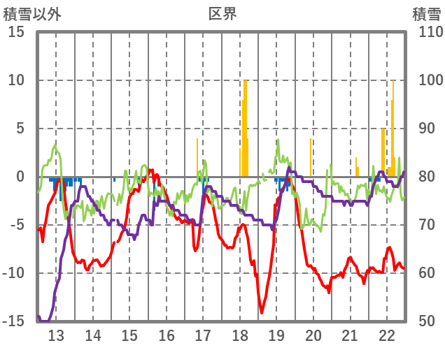 | 日 | 時 | 気温 | 降水 | 風向/風速 | 日照 | 積雪 | 降雪 |