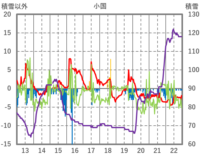 | 日 | 時 | 気温 | 降水 | 風向/風速 | 日照 | 積雪 | 降雪 |