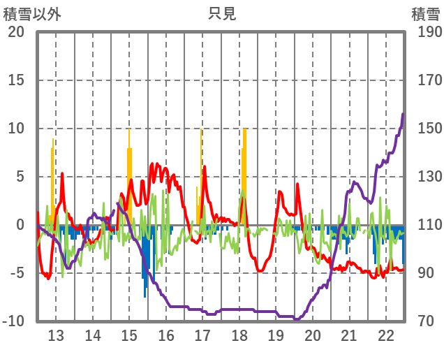 | 日 | 時 | 気温 | 降水 | 風向/風速 | 日照 | 積雪 | 降雪 |