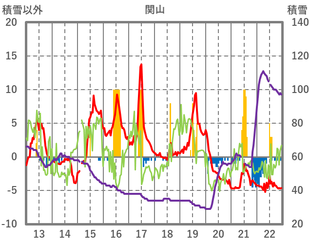 | 日 | 時 | 気温 | 降水 | 風向/風速 | 日照 | 積雪 | 降雪 |