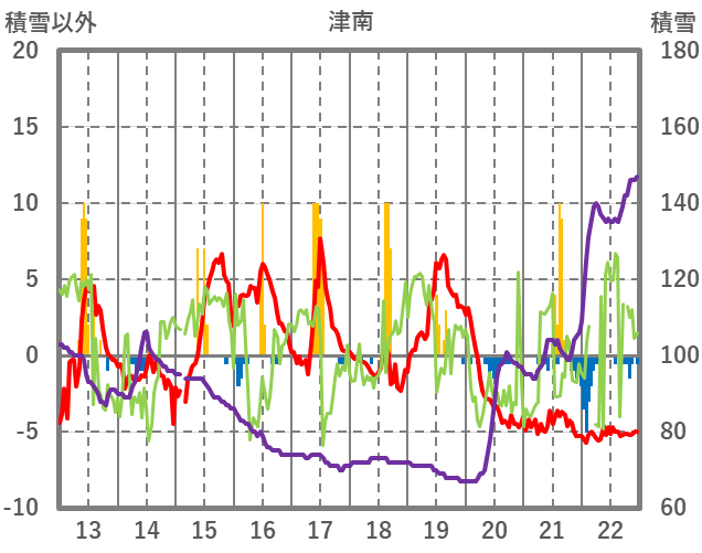 | 日 | 時 | 気温 | 降水 | 風向/風速 | 日照 | 積雪 | 降雪 |