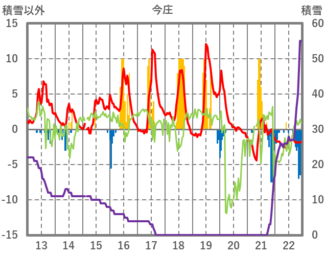 | 日 | 時 | 気温 | 降水 | 風向/風速 | 日照 | 積雪 | 降雪 |